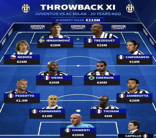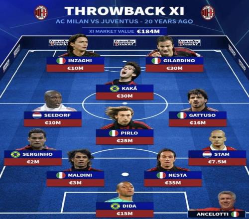 近日,知名足球数据网站德国转会市场的一组回顾数据引发讨论,复盘了2005年10月29意甲第10轮AC米兰对阵尤文图斯的经典较量。
